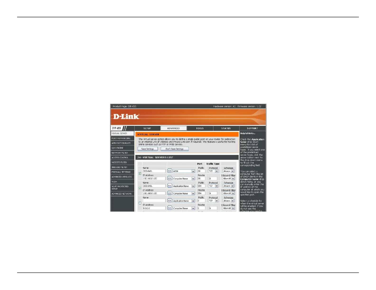 Enter valid ports in the Virtual Server section of your router. Please make sure to check the box next to the camera name on the Virtual Server List