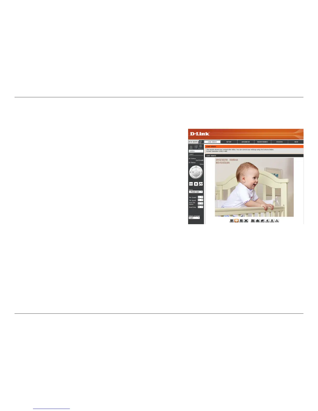 A live feed from the camera is displayed upon logging into the camera’s web interface.