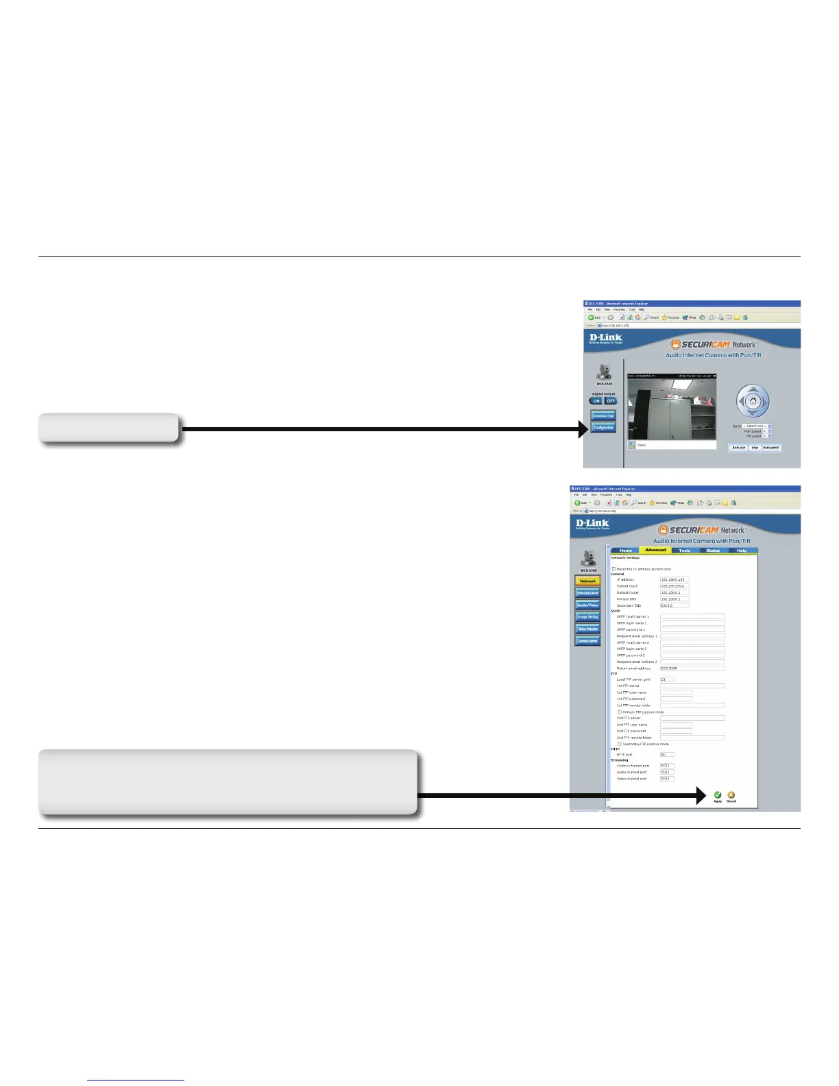 different elements of the DCS-5300 can be congured. The Advanced tab is