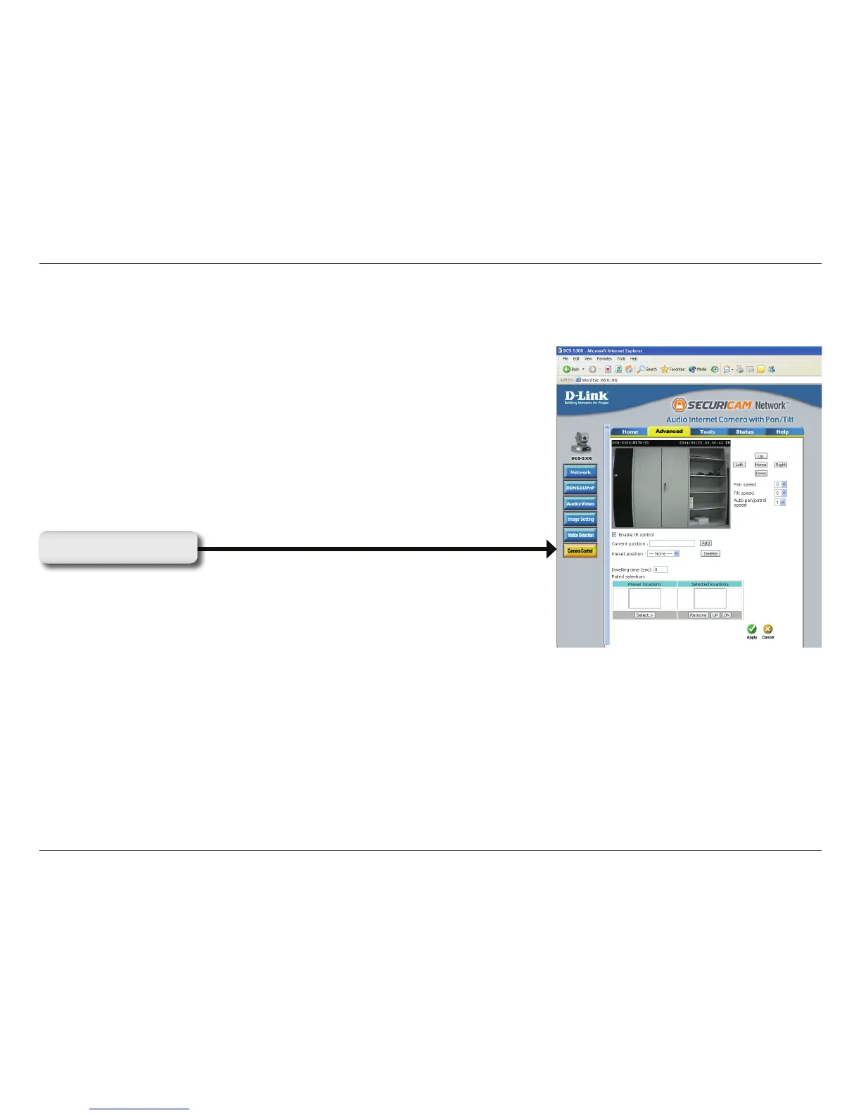 Click the Camera Control button from the Conguration screen to access settings that affect how the DCS-5300