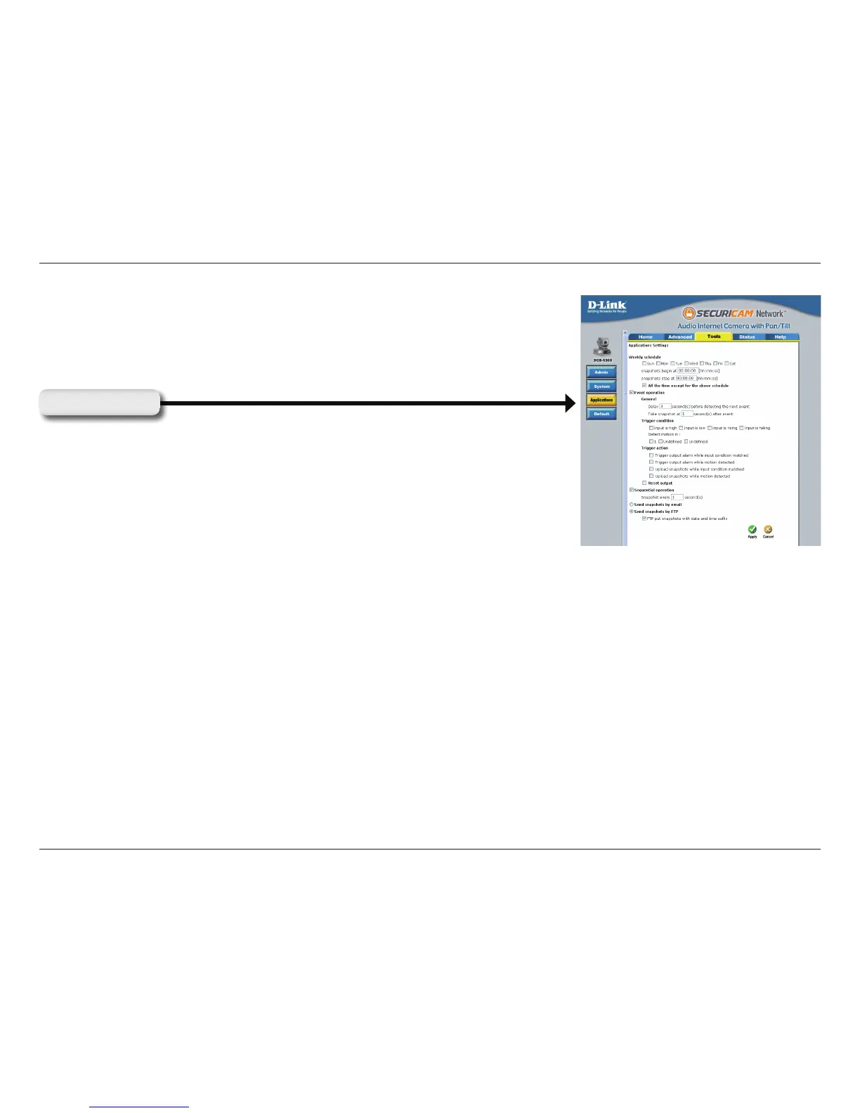 Next, click the Applications button under the Tools tab to set the application settings for the DCS-5300.