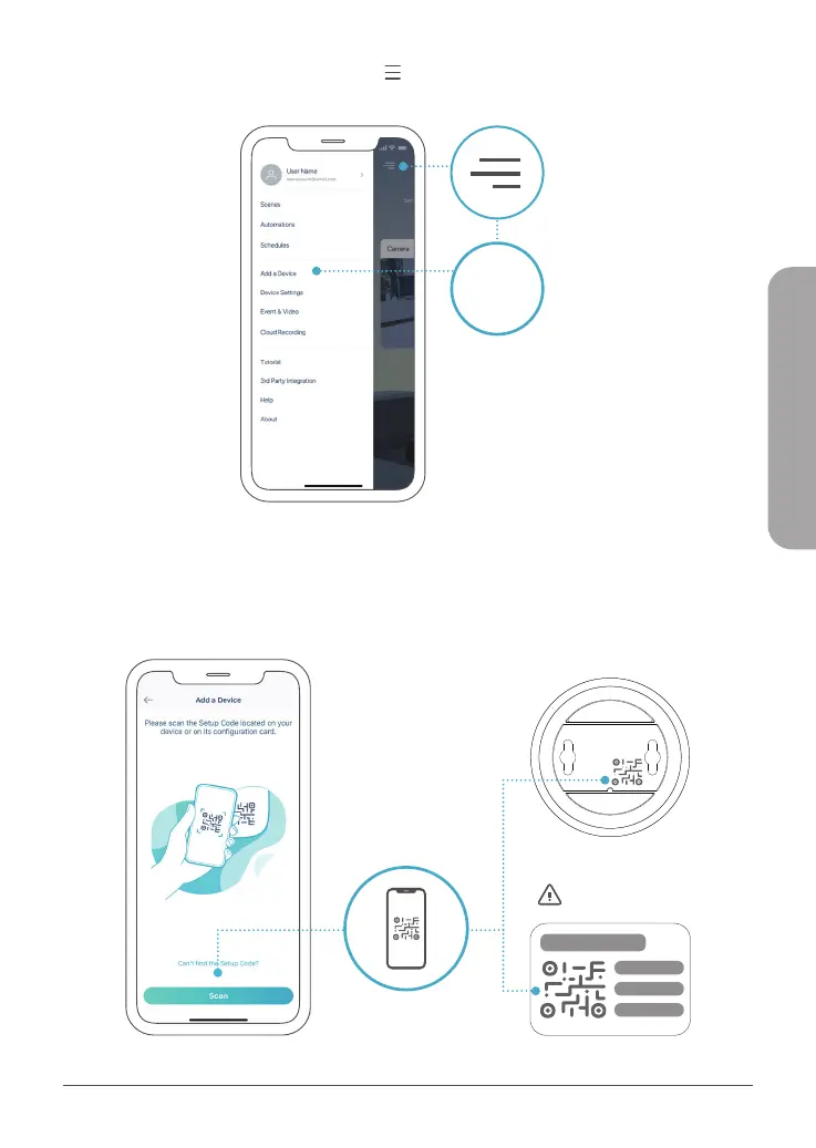 Vyhledejte a naskenujte kód pro nastavení na zařízení nebo na