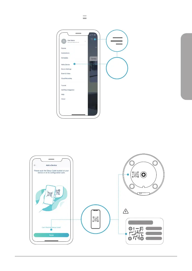Recherchez et scannez le code de configuration sur l'appareil ou sur