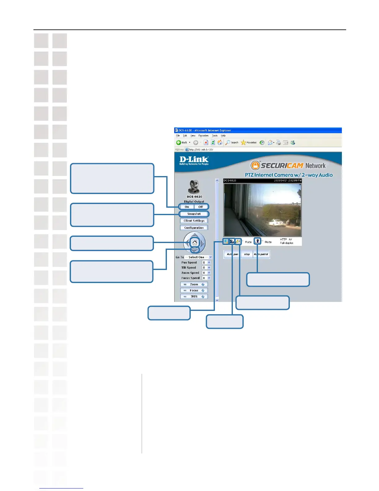 To the right of the image are controls that allow you to pan and tilt the camera. Pan and tilt can