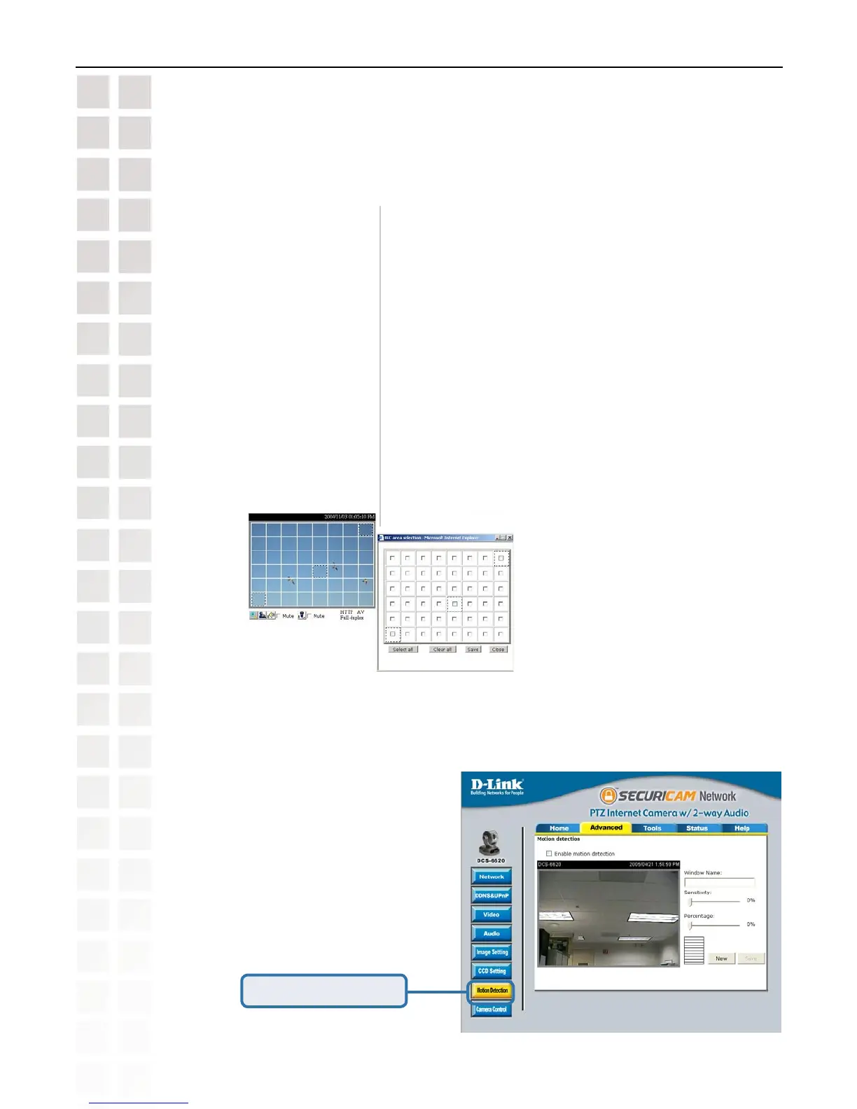 Click the Motion Detection button from the Configuration screen to access settings that effect