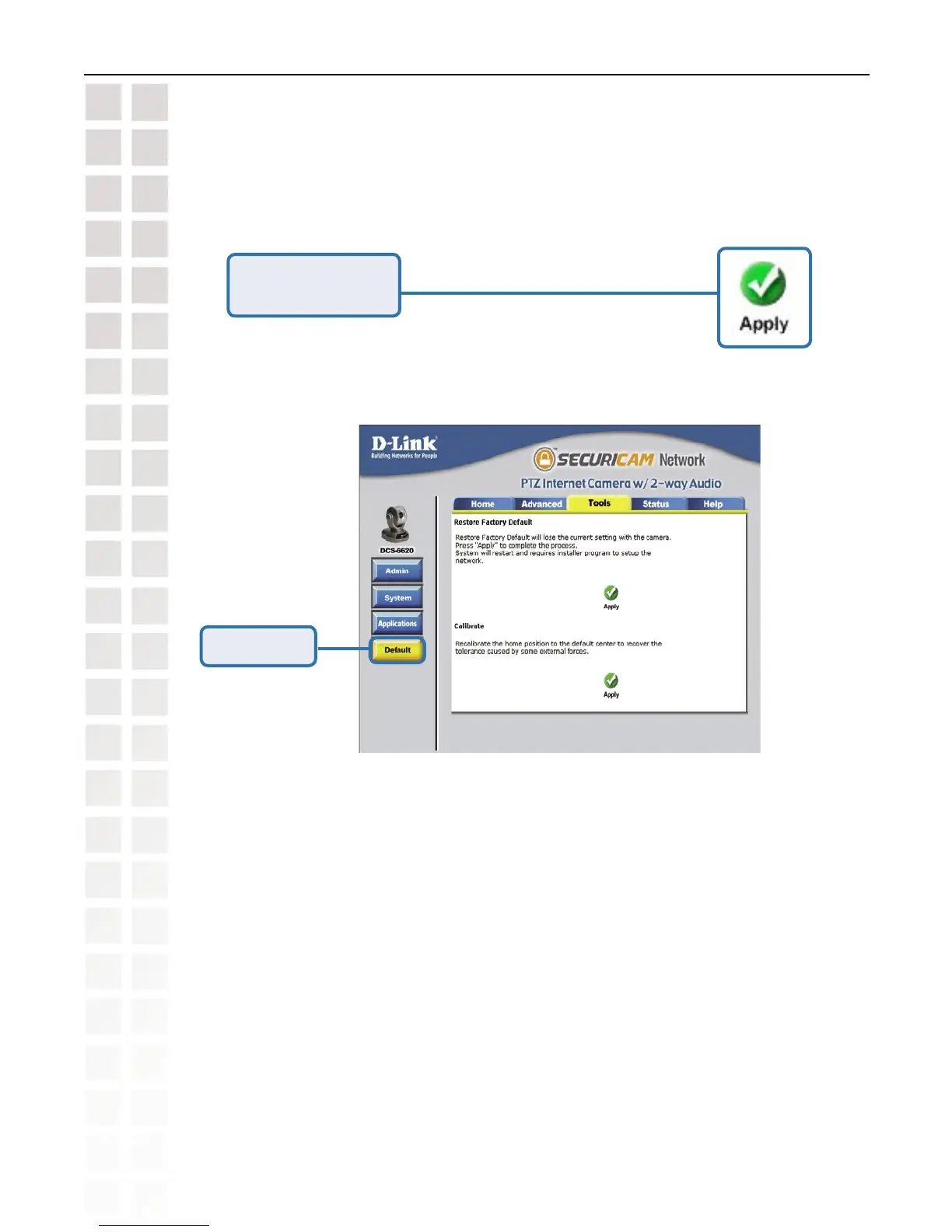 Click Apply on the screen to restore factory default settings. This means any changes made will