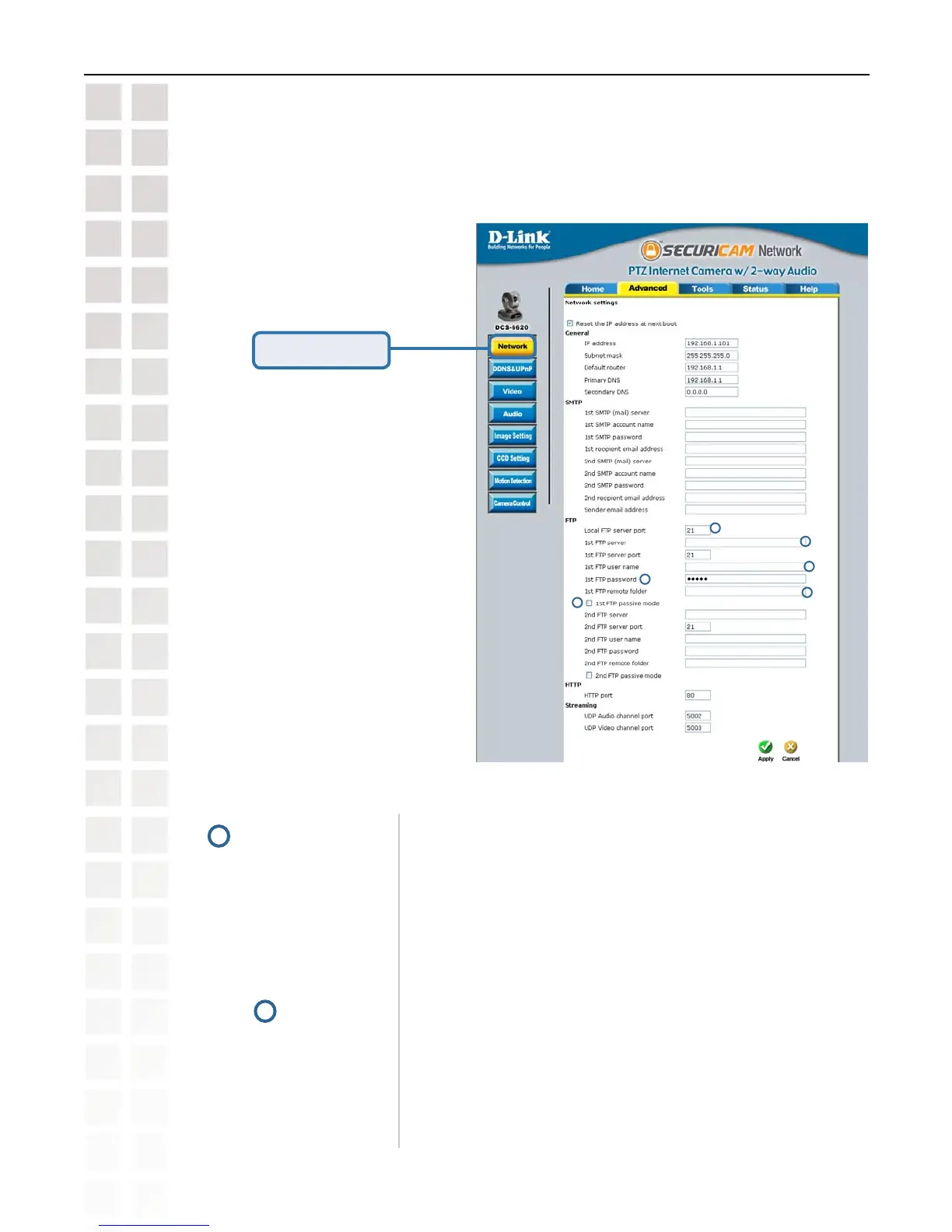 Next, click the Network button under the Advanced tab to set the FTP server settings for the