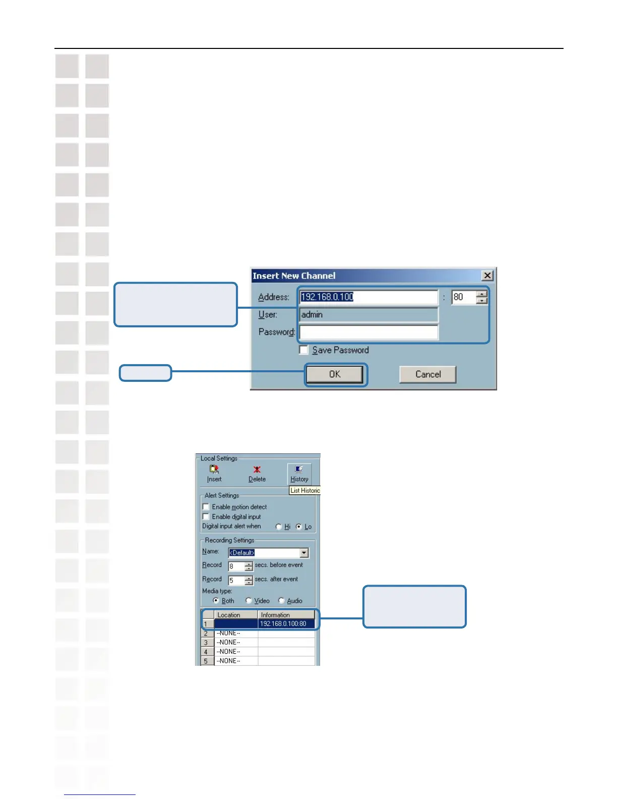 an “Insert New Channel” dialog will popup, as shown below. Specify the IP address, port, and