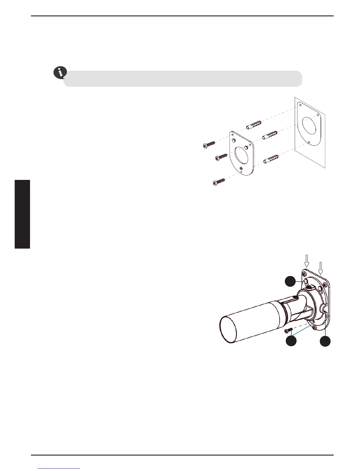 Insira as buchas e xe o suporte usando os parafusos fornecidos.