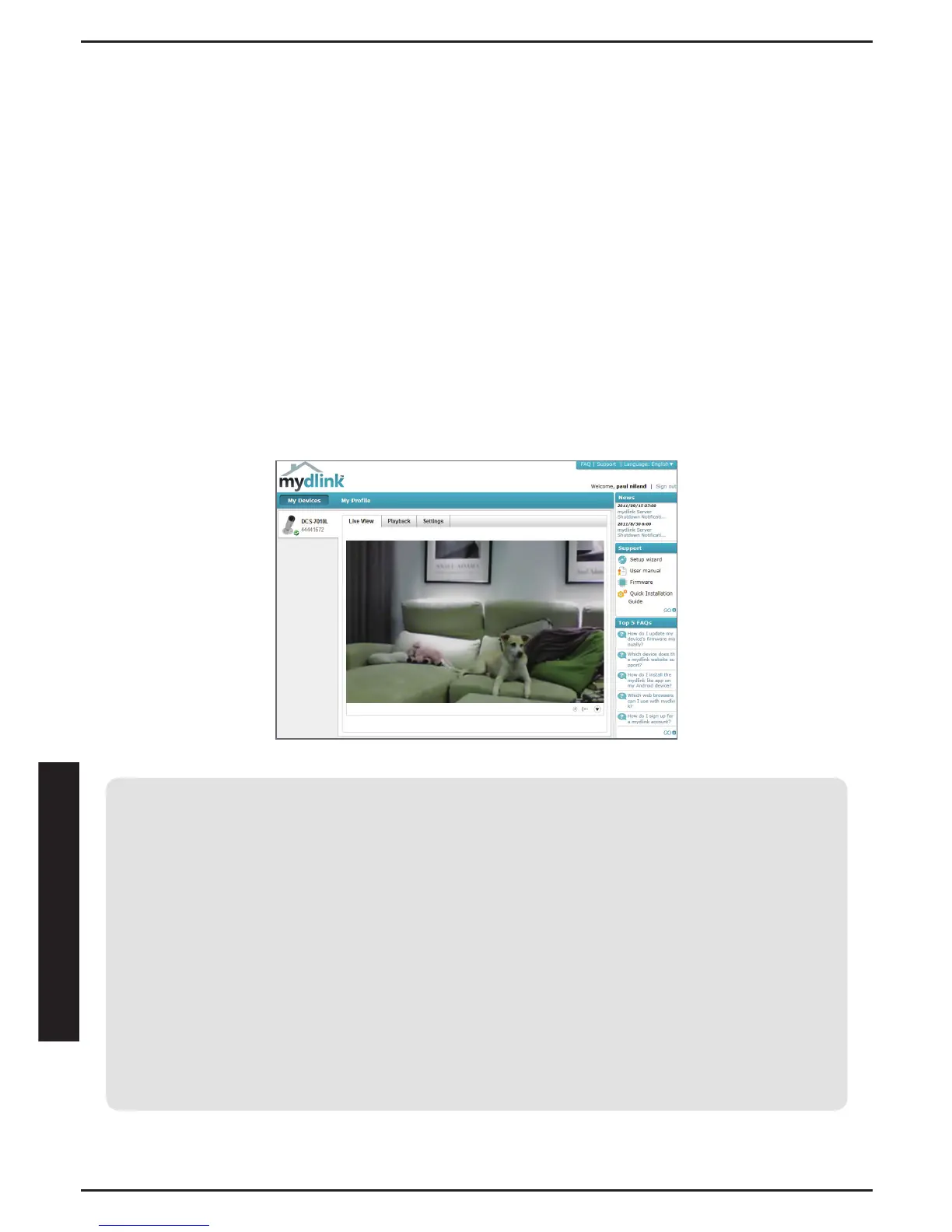 account mydlink Anda, maka Anda akan dapat melihat “Live View” melalui