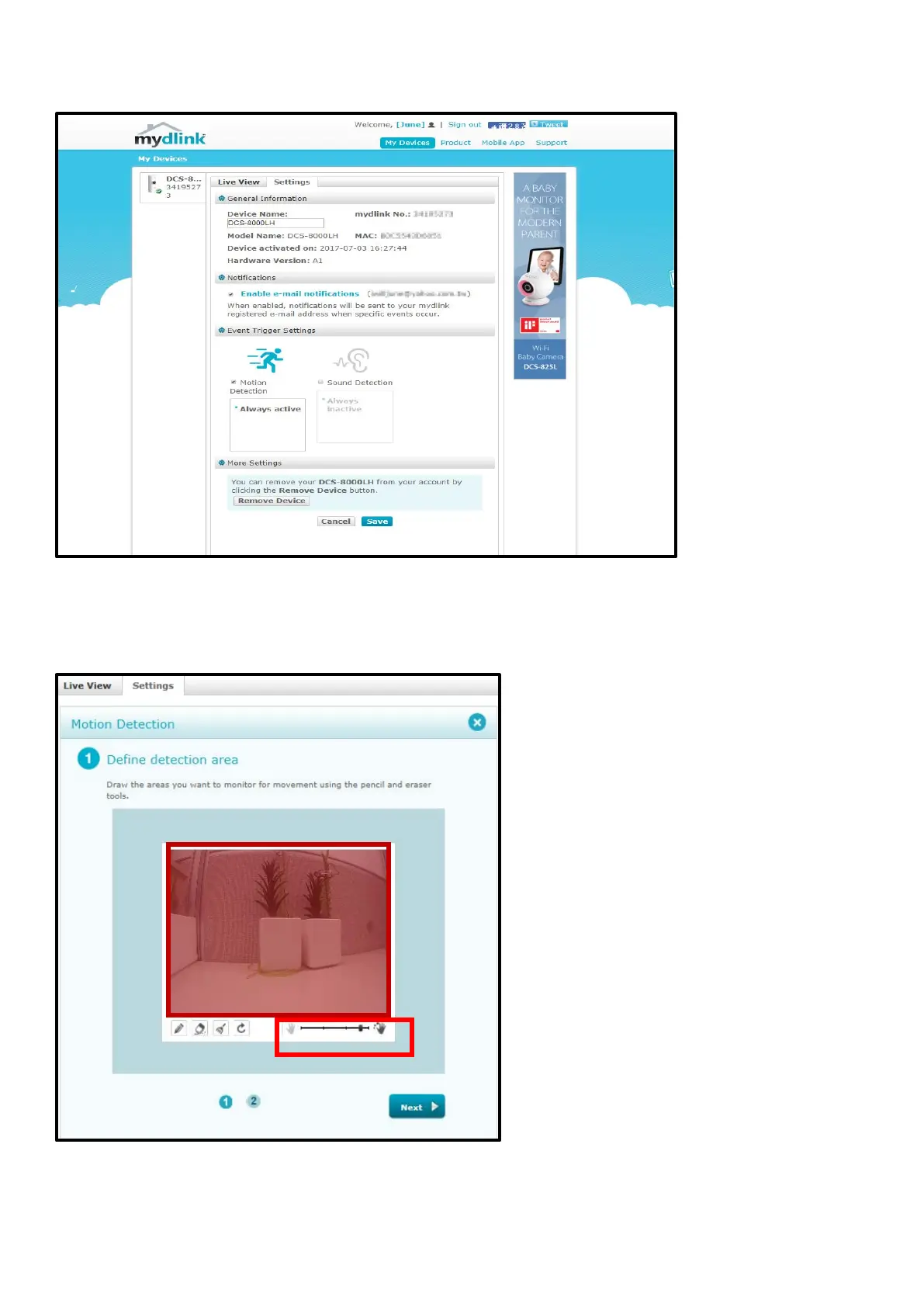 registered e-mail address. Check the Motion Detection box to enable motion detection.