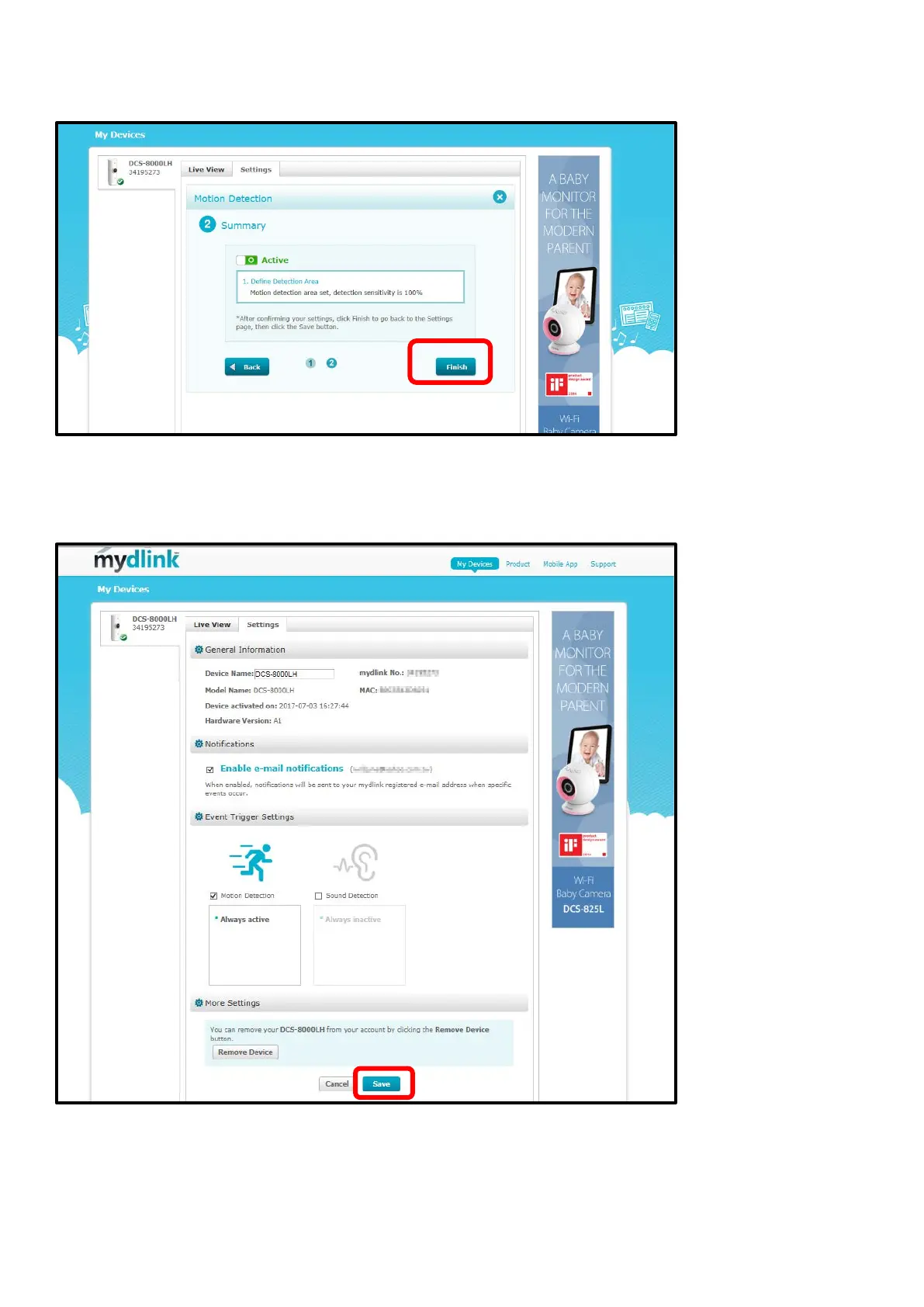 Step 6: Check the Enable e-mail notifications box to allow notifications be sent to your mydlink registered e-