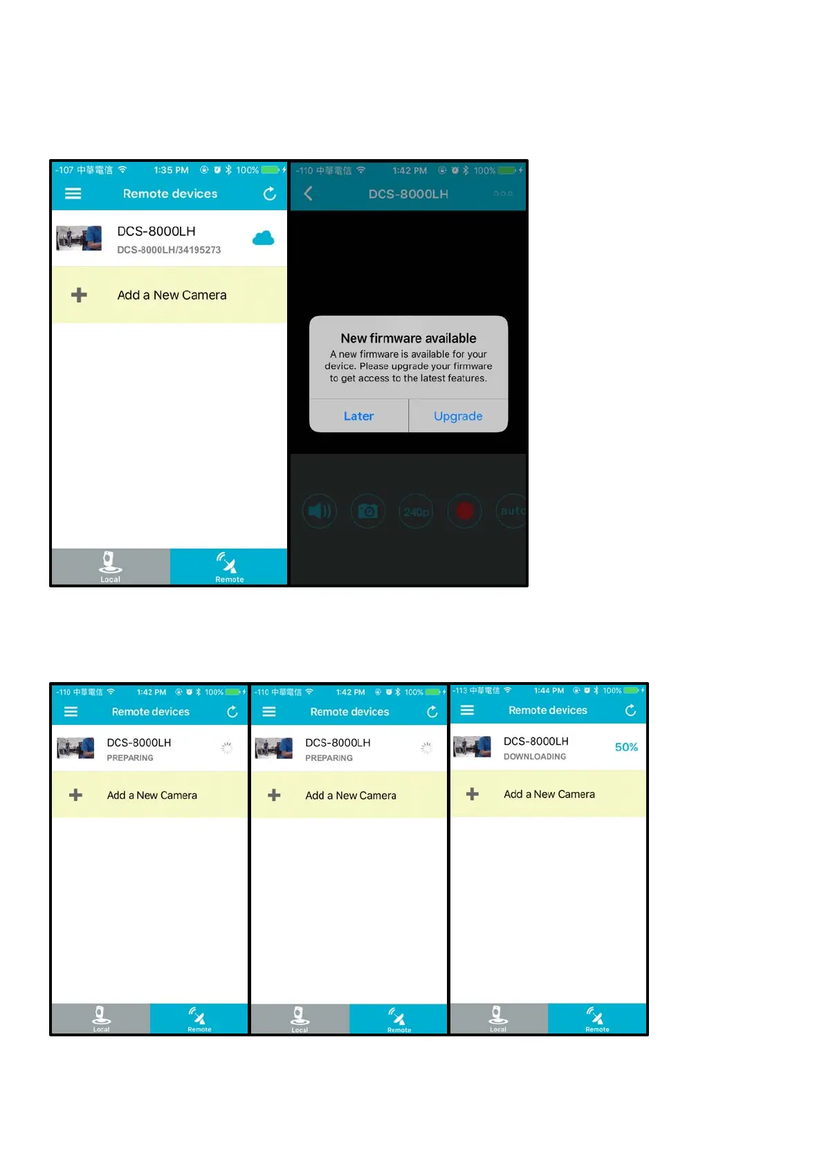 Step1: Launch the mydlink Lite. Tap DCH-8000LH. A prompter “New firmware available” will appear, if a