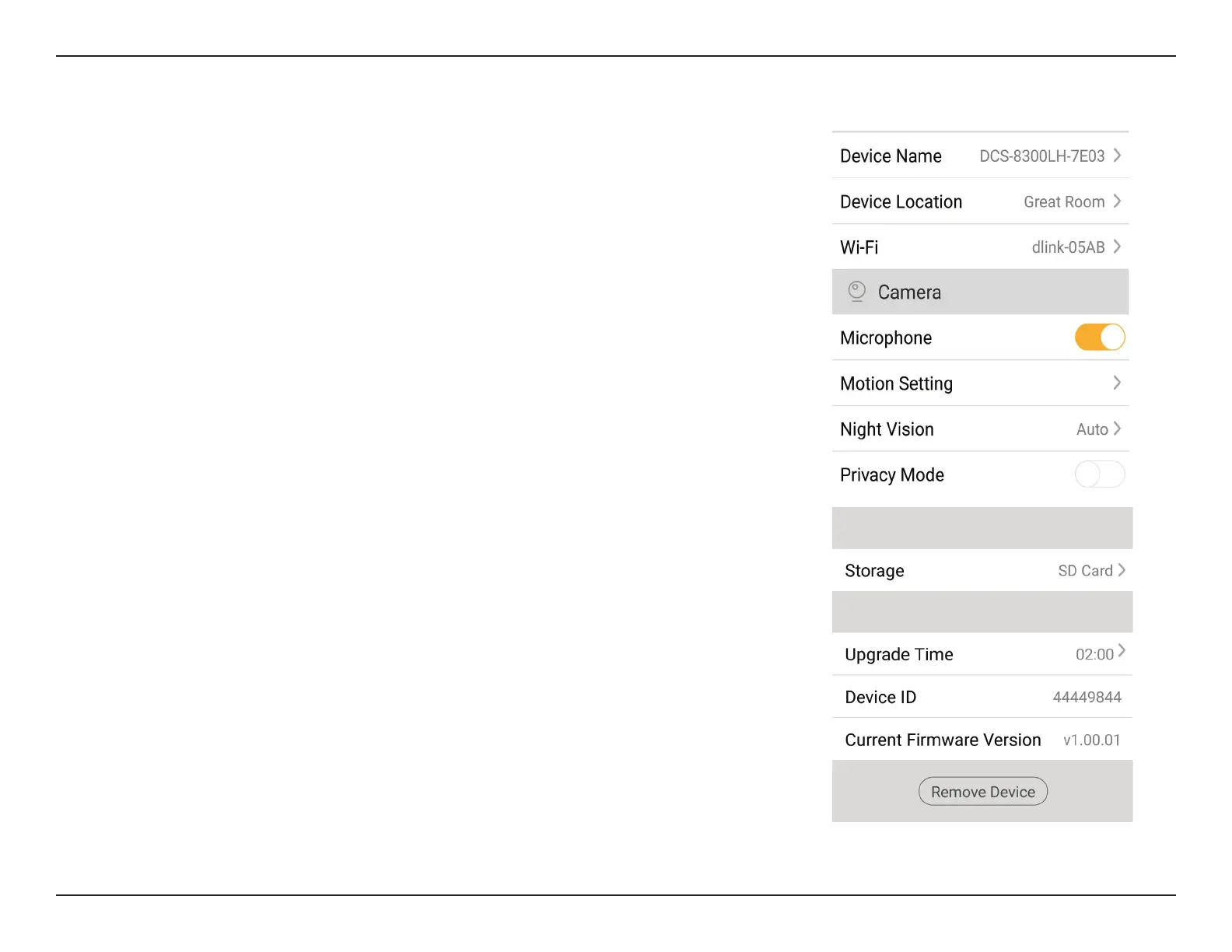 Remove Device button will remove your device from the myDlink app.