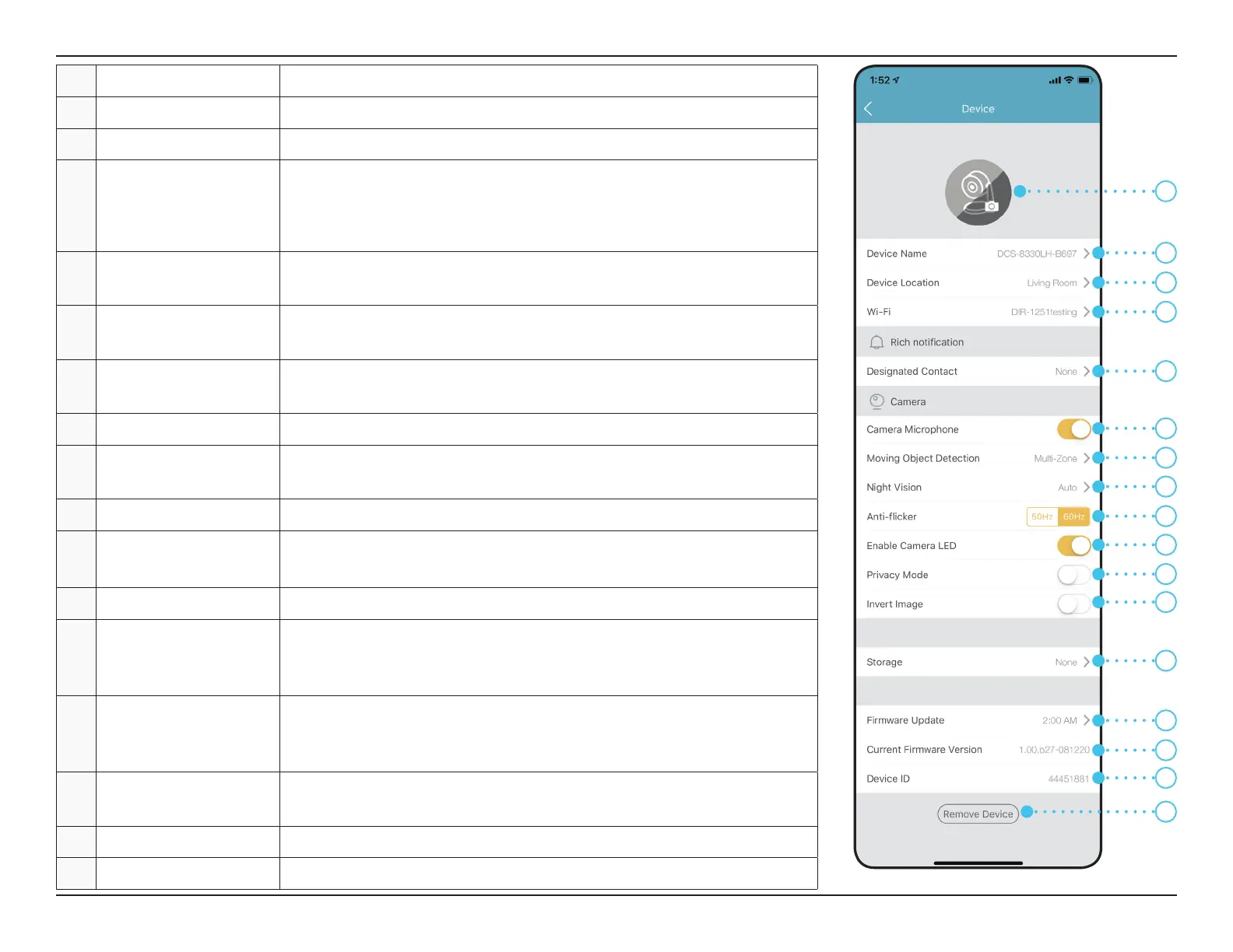 17 Remove Device Tap this button to disconnect this device from your mydlink account.