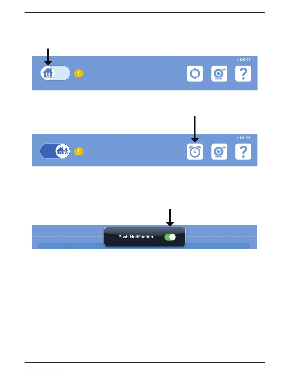 C. Appuyez sur l'icône de réveil et vous verrez le paramètre de Notication Push (Push