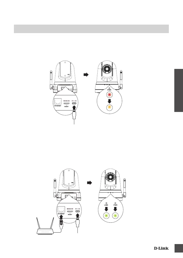 Wacht tot zowel de PWR LED als de LINK LED groen oplichten.