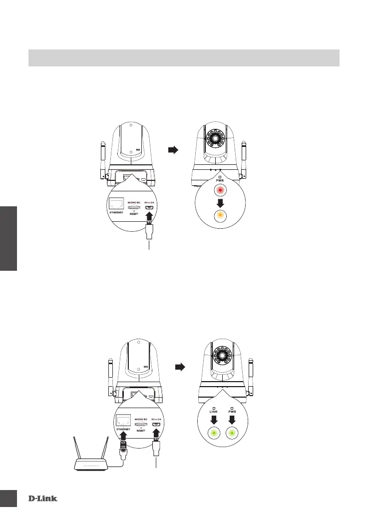 Csatlakoztassa a csomagban talált USB-tápadaptert és Ethernet-kábelt a kamera hátoldalához.