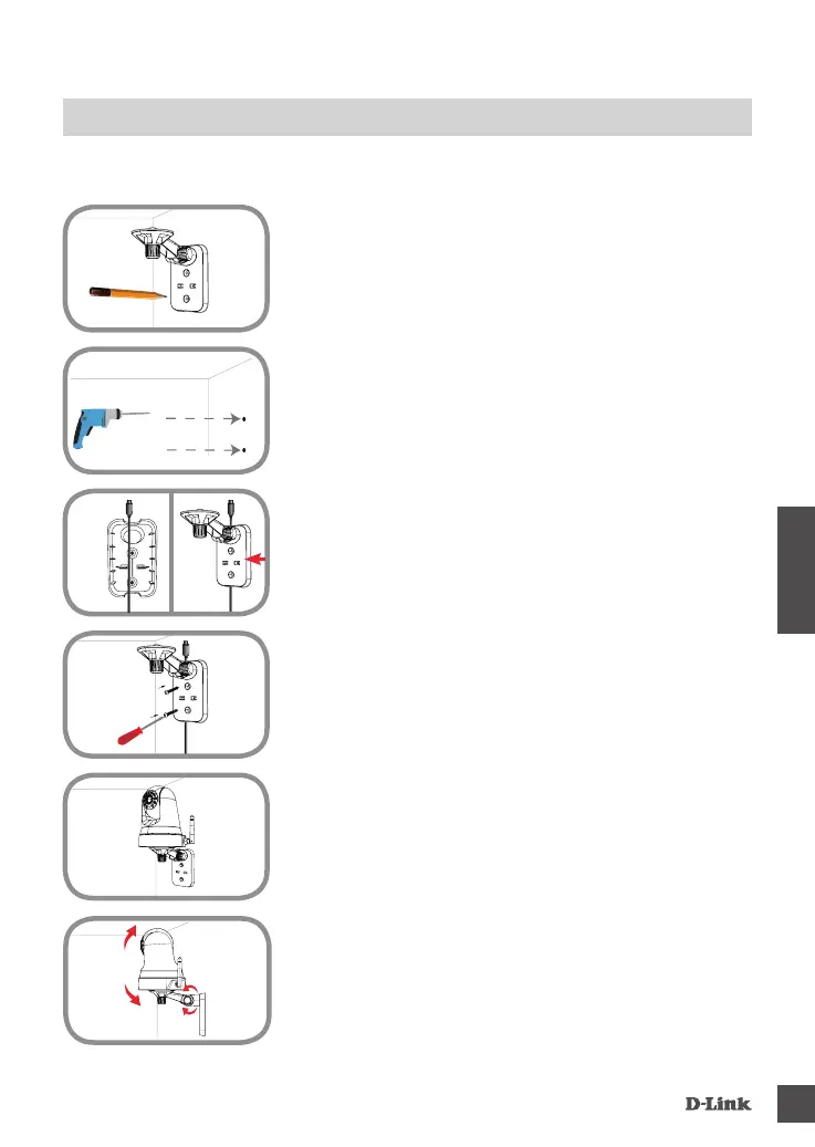Der henvises til nedenstående trin, som hjælper dig med at montere kameraet med armmontering.