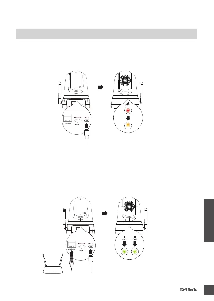 Ethernet kabela priključite u usmjernik ili postojeću mrežu. Pričekajte dok i PWR LED lampica i