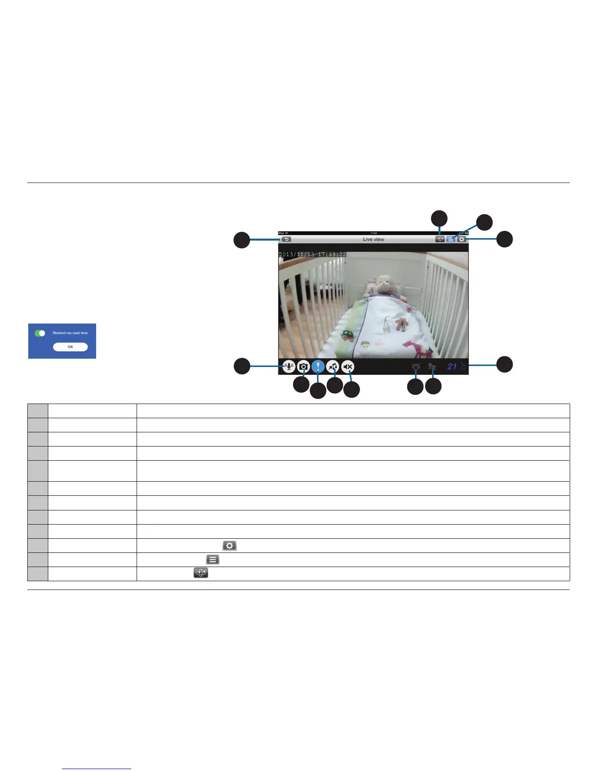 6 Speaker Tap on the Speaker icon to enable or disable Live View audio. Volume can be controlled by using the volume buttons on the mobile device.