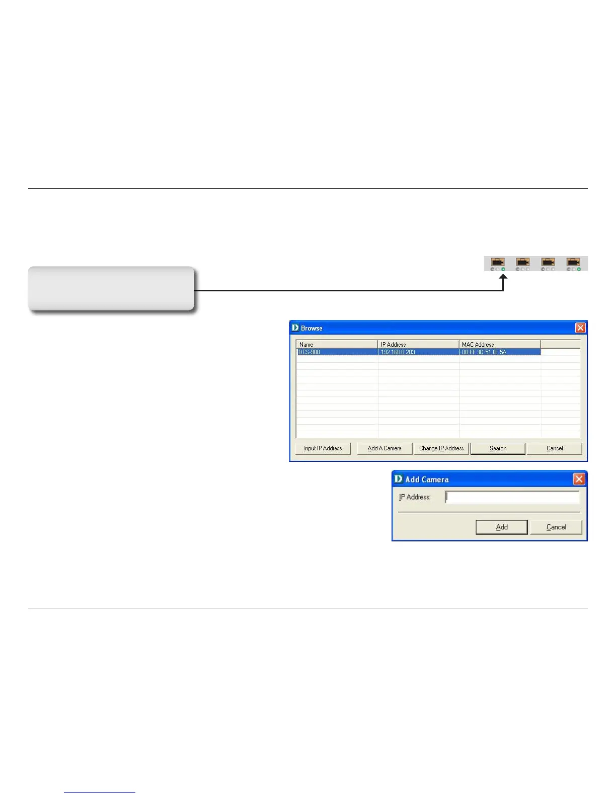 To add a new camera select the Camera button from the IPView SE. Make sure that the green lights are on when