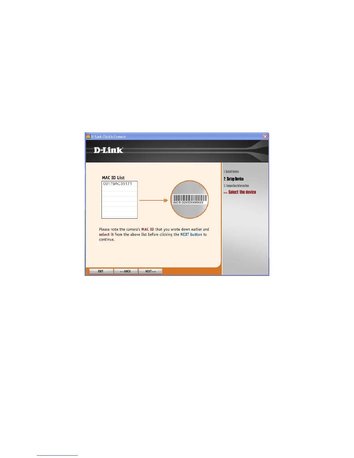 Select your camera’s MAC ID from the MAC ID List, and then click NEXT>>.