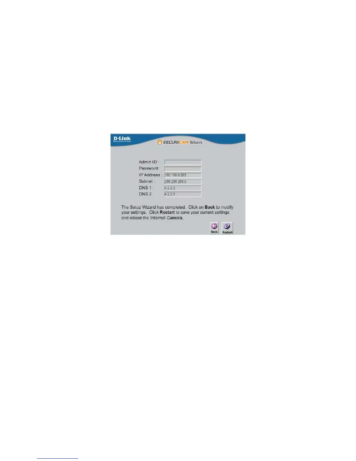 If you need to make any changes, click Back to modify your settings. Otherwise, click Restart to save your settings.