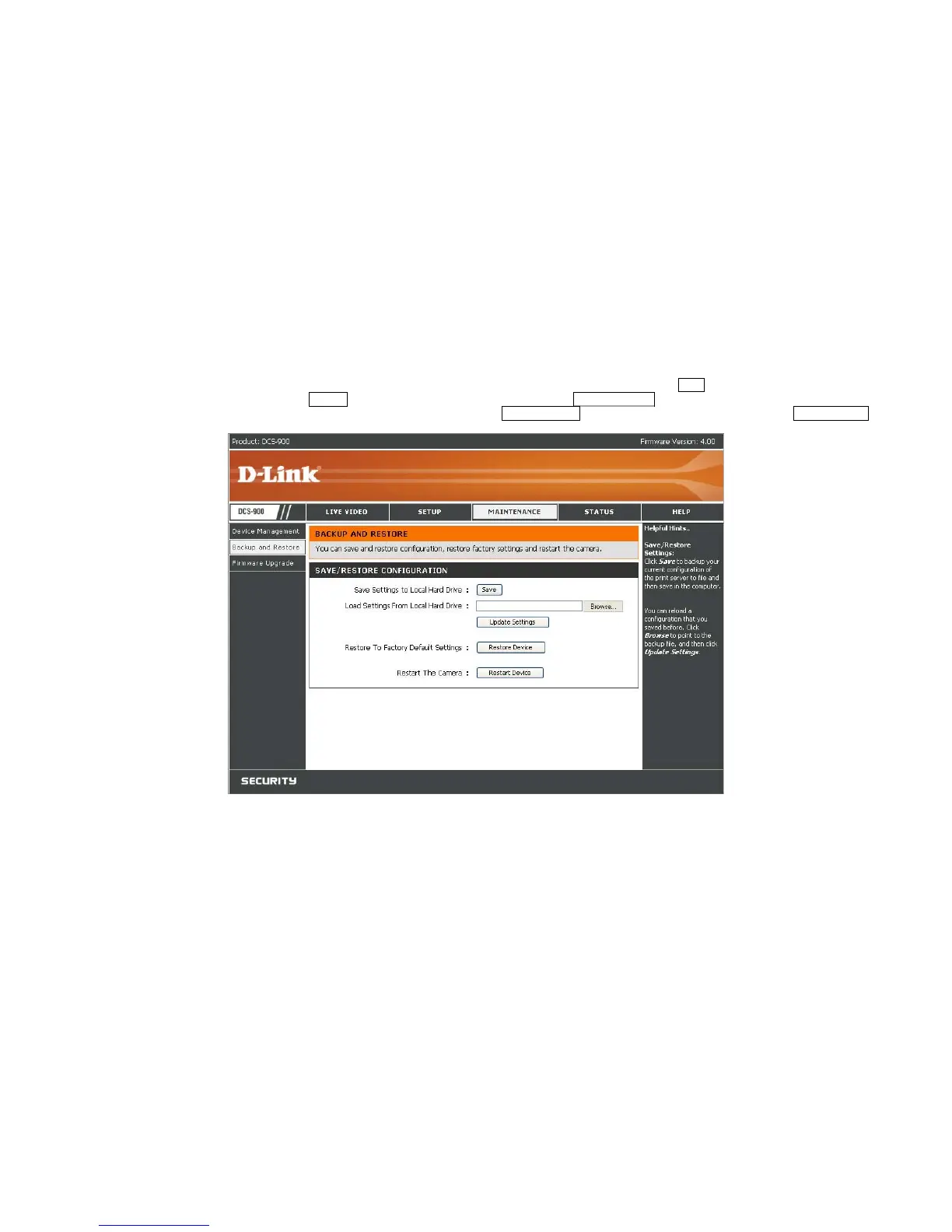 a configuration that you saved before by clicking Browse to direct to the backup file, and then clicking Update Settings button for reloading with rebooting the device.