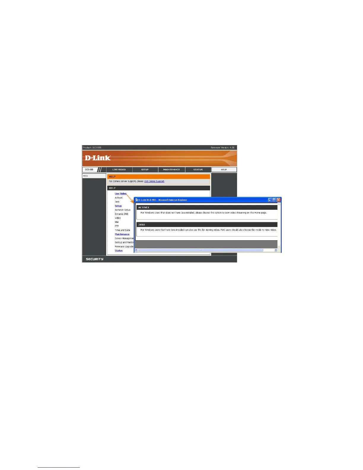 The Help screen provides you brief information about the DCS-900 for your reference.