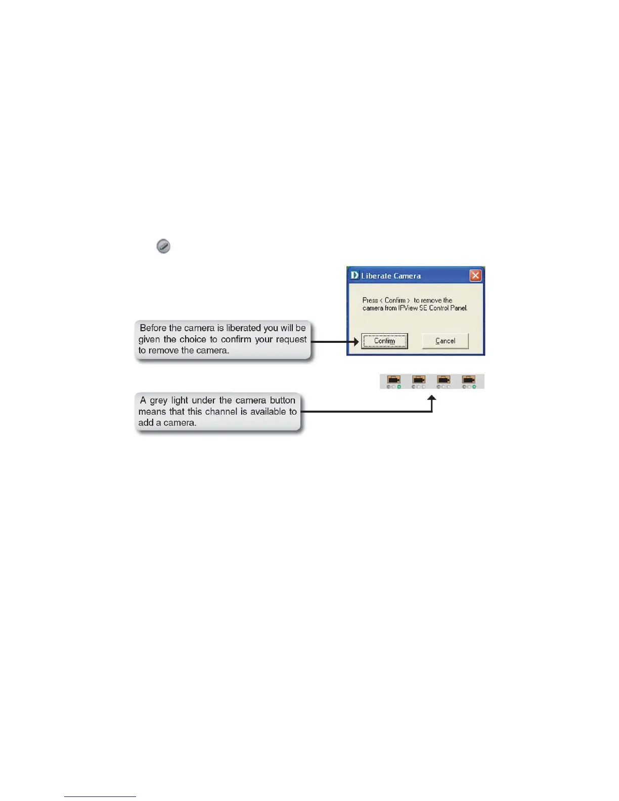 Click the Liberate Camera button on the IPView SE, while you are connected to the camera you would like deleted. The IPView SE camera button becomes