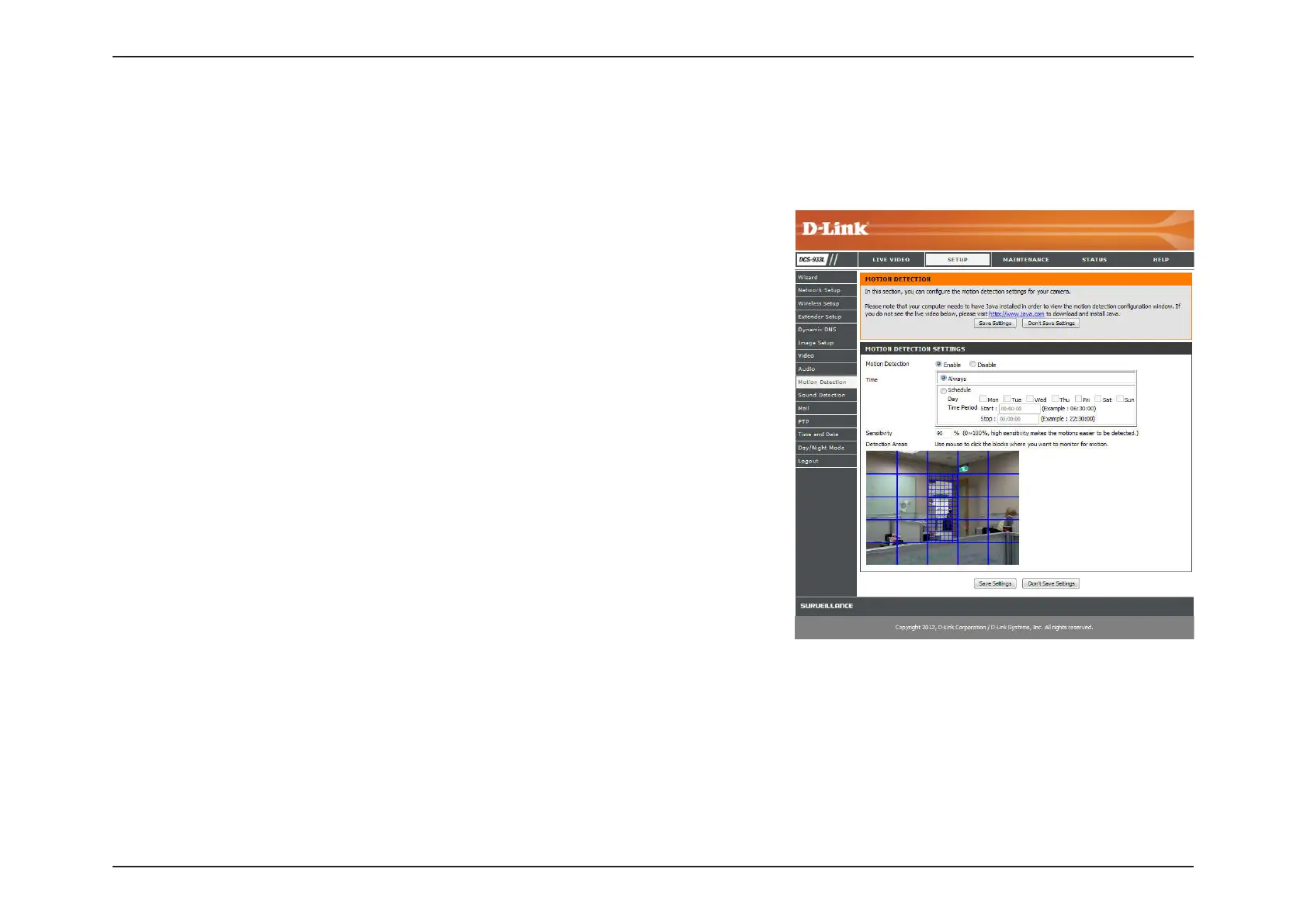 Motion detection allows you to mark areas o your camera’s video to monitor or motion, which can be used to trigger snapshots
