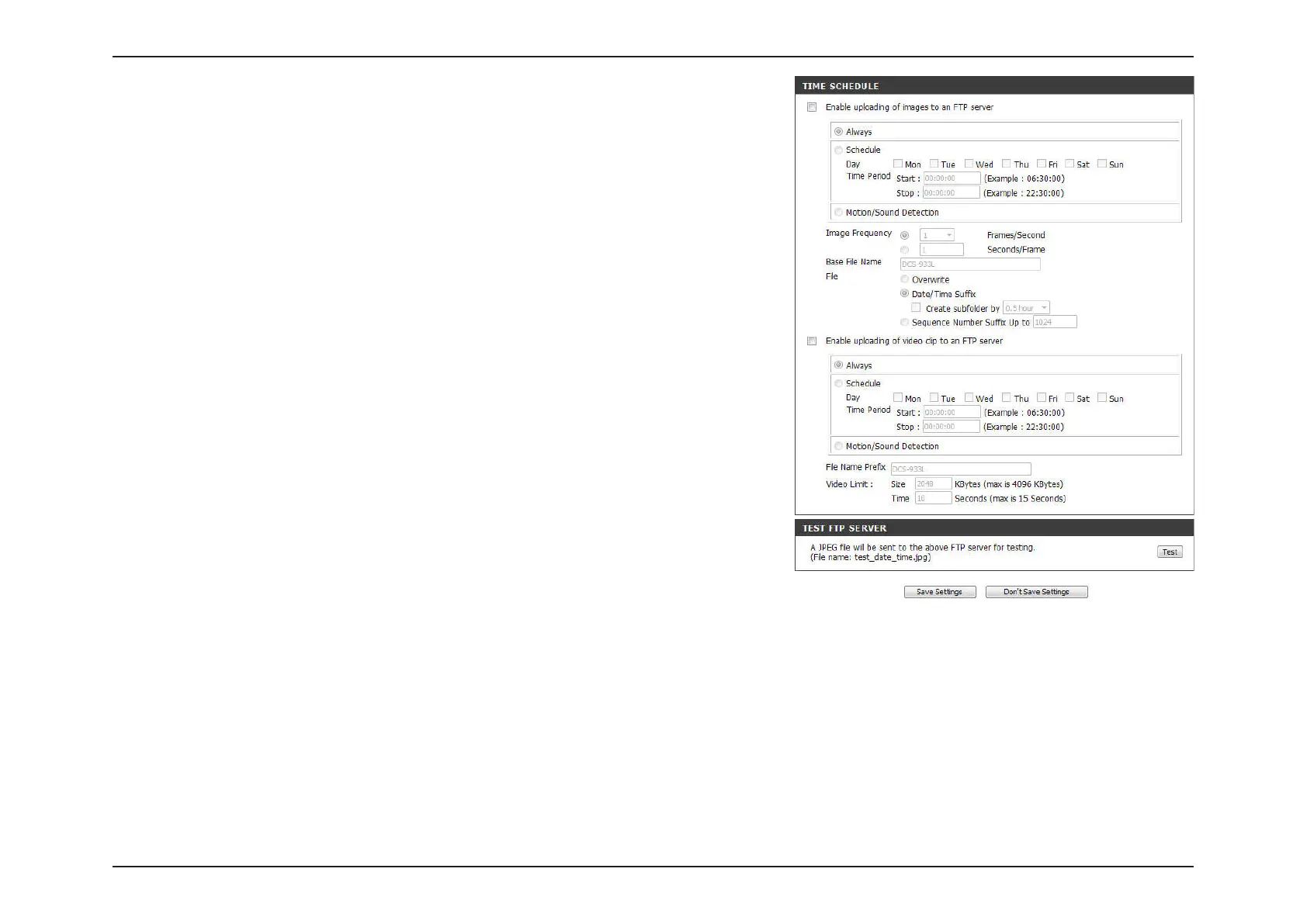 Clicking on the Test button will send a test JPEG snapshot to the FTP server