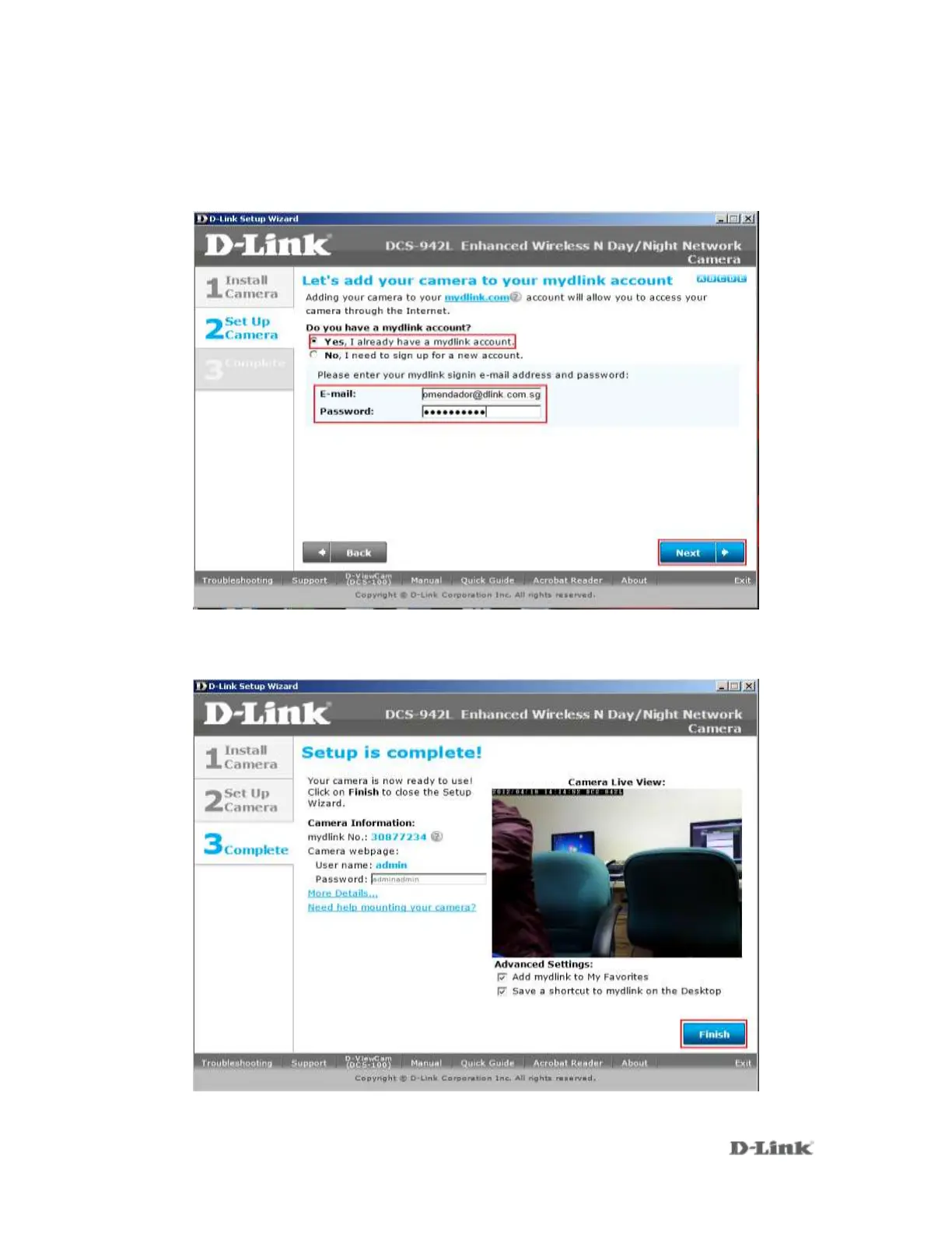 FAQ: Setup Wizard – Setting Up the DCS-942L WITH Existing mydlink Account – Version 1.00