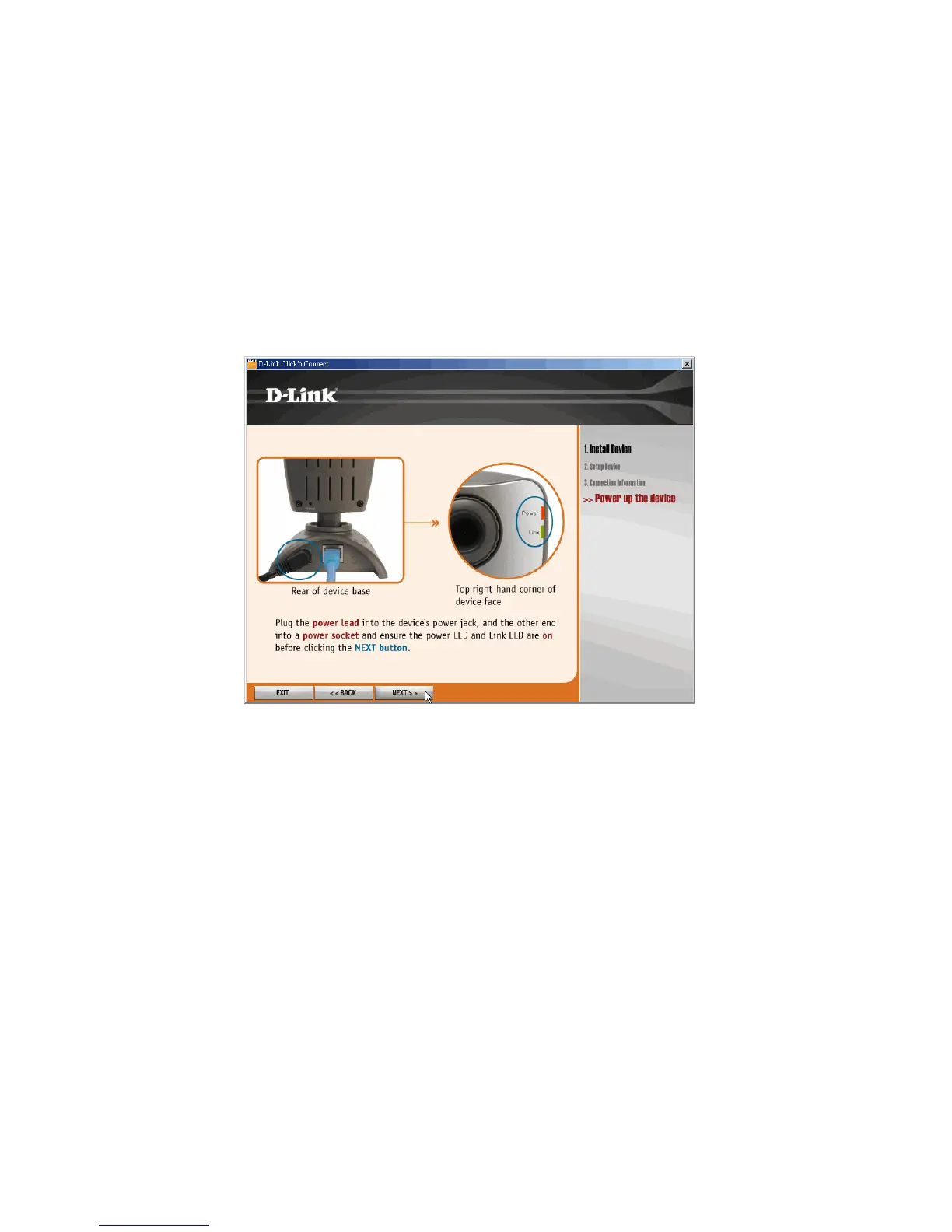 Follow the instruction below to power up the device, and then click NEXT>>.