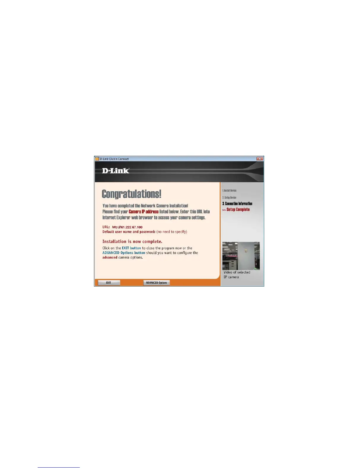 Since DHCP is available for your Internet connection and IP camera, DCC will start DHCP assign automatically for your IP camera and display the following screen