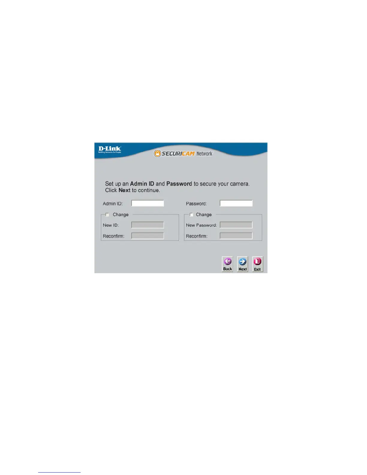 By default, the Admin ID and Password are “admin” (lower case). Enter this in both fields. To change the Admin Password, select the Change box and enter a New