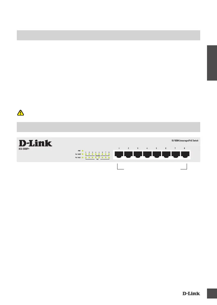 1. Установите коммутатор DES-1008P+ в довольно прохладном и сухом месте с допустимым