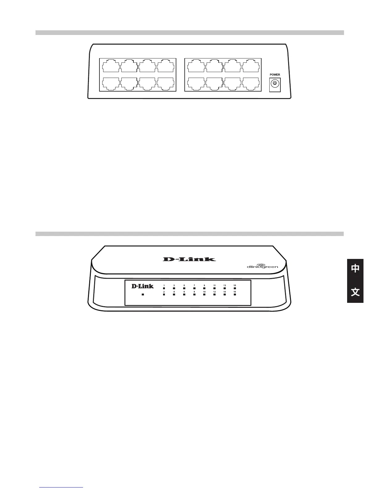 範圍。 DES-1016A無電源開關按鈕,當電源供應器接入交換器電源插孔便會立即啟動交