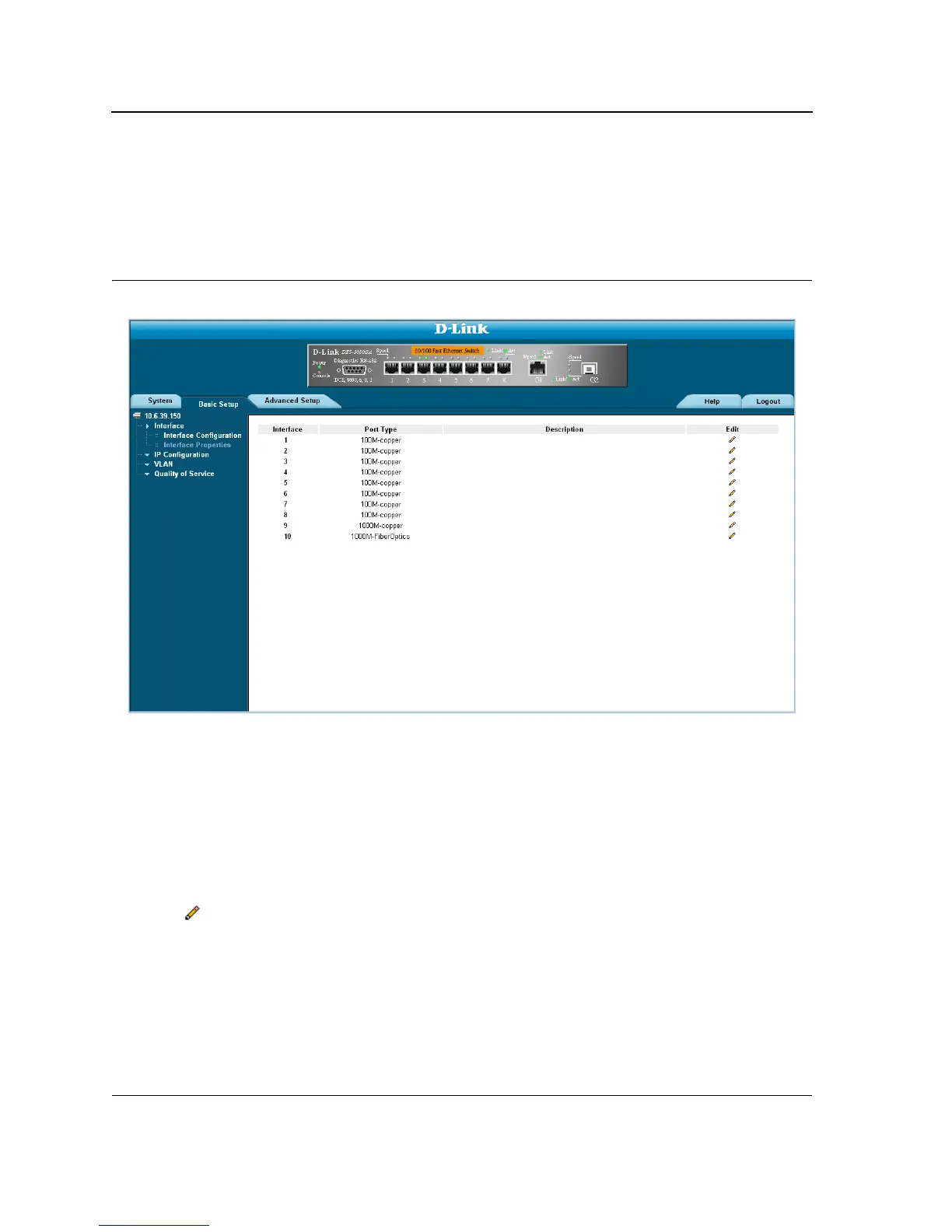 1. Click Basic Setup > Interface > Interface Properties. The Interface Configuration Page opens.