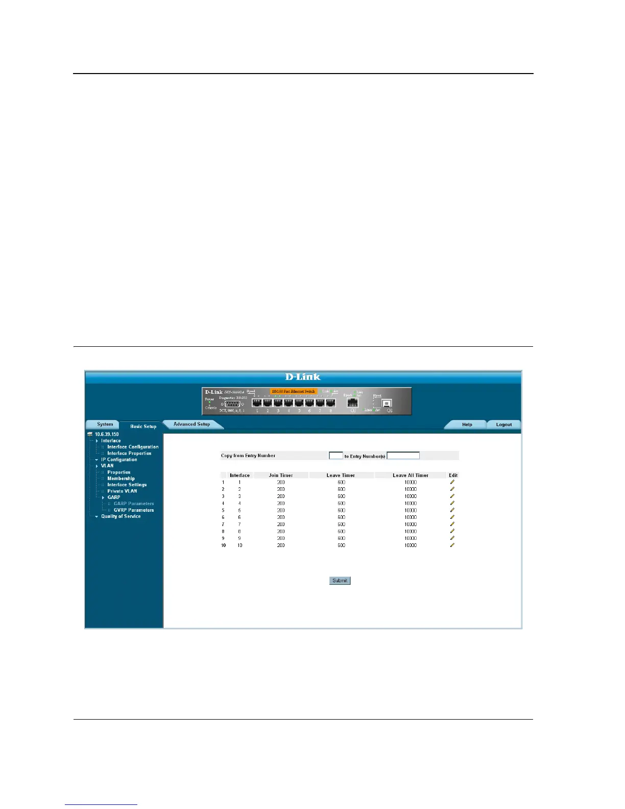 1. Click Basic Setup > VLAN > GARP. The GARP Parameters Page opens: