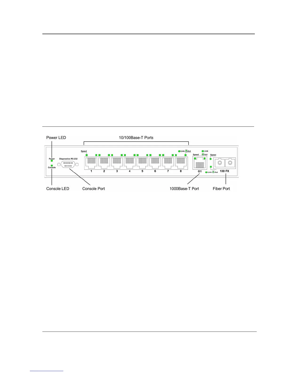 • 8 Fast Ethernet ports — RJ-45 ports designated as 10/100Base-TX . The RJ-45 ports are designated as
