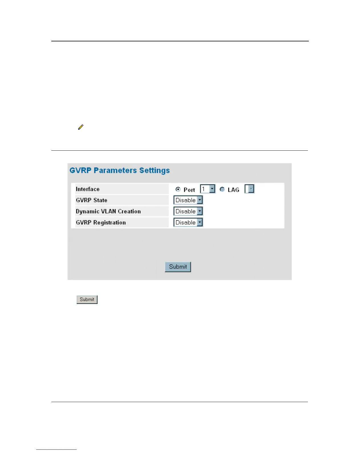 2. Click . The GVRP Parameters Page opens: