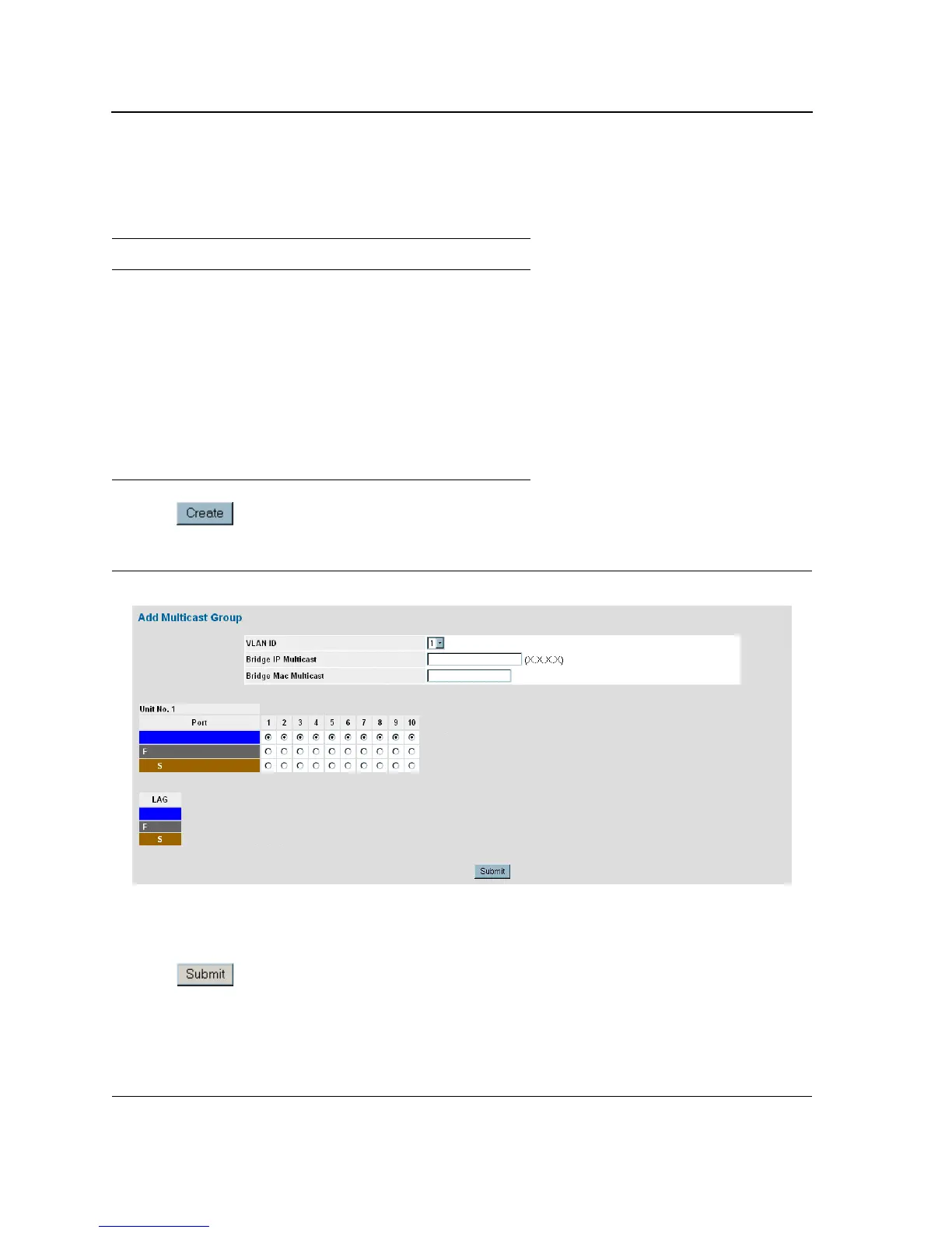 The following table contains the IGMP port and LAG members management settings: