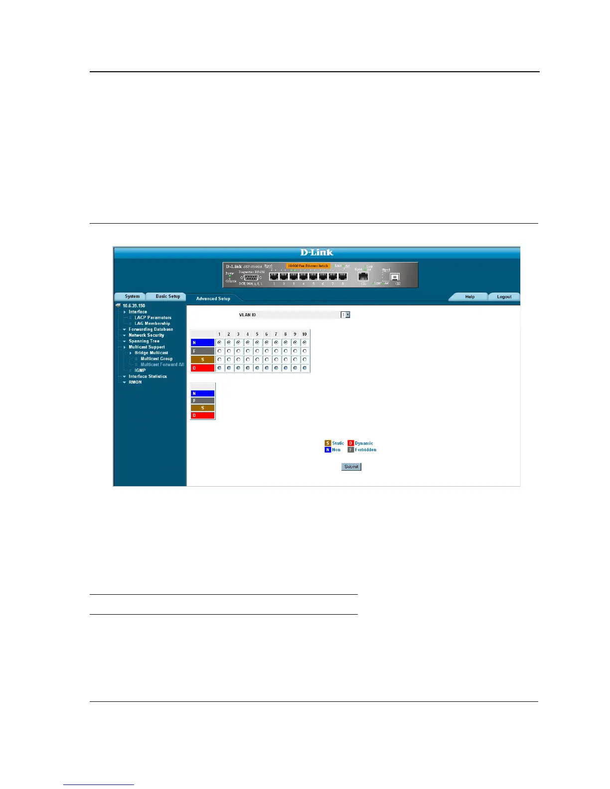 appropriate port or VLAN. Unless LAGs are defined, only a Multicast Forward All table displays. To define Multi-