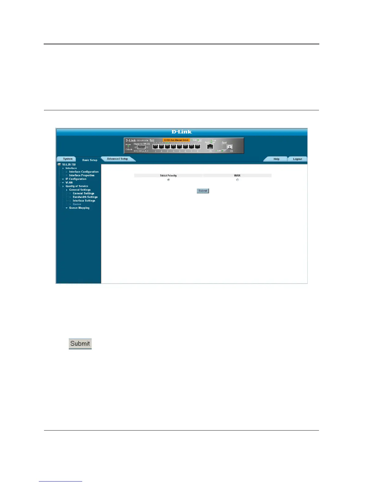 1. Click Basic Setup > Quality of Service > General Settings > Queue. The Queue Page opens.