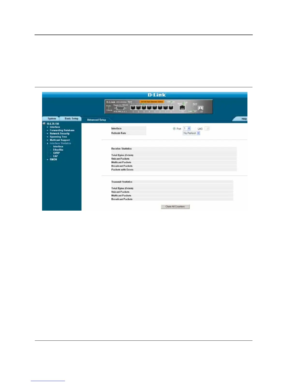 1. Click Advanced Setup > Interface Statistics > Interface. The Interface Statistics Page opens.