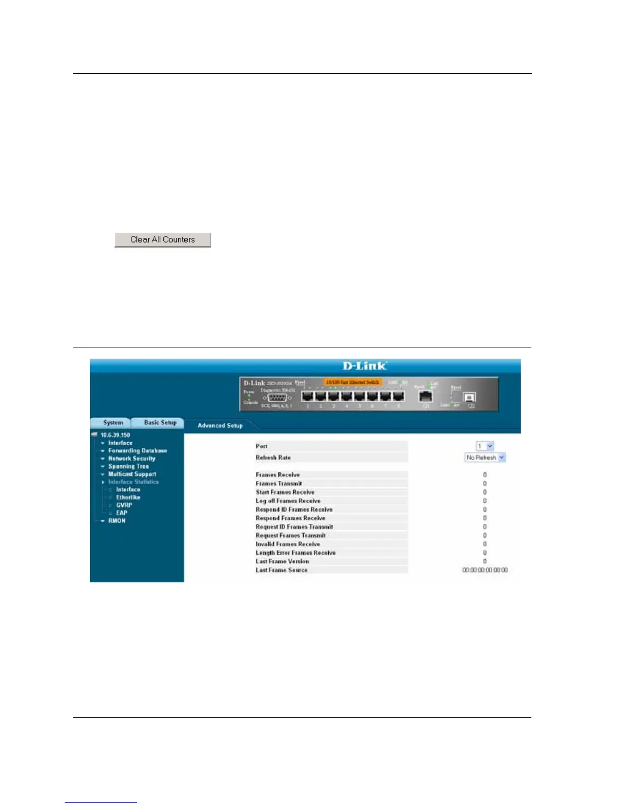 The EAP Statistics Page contains information about EAP packets received on a specific port. To view the EAP
