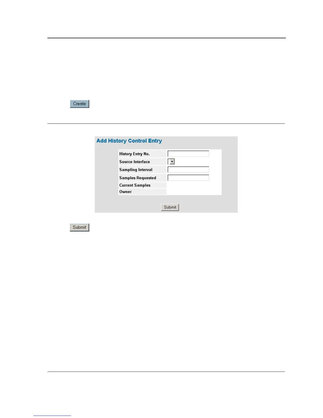 4. Click . The entry is added to the RMON History Control Page, and the device is updated.