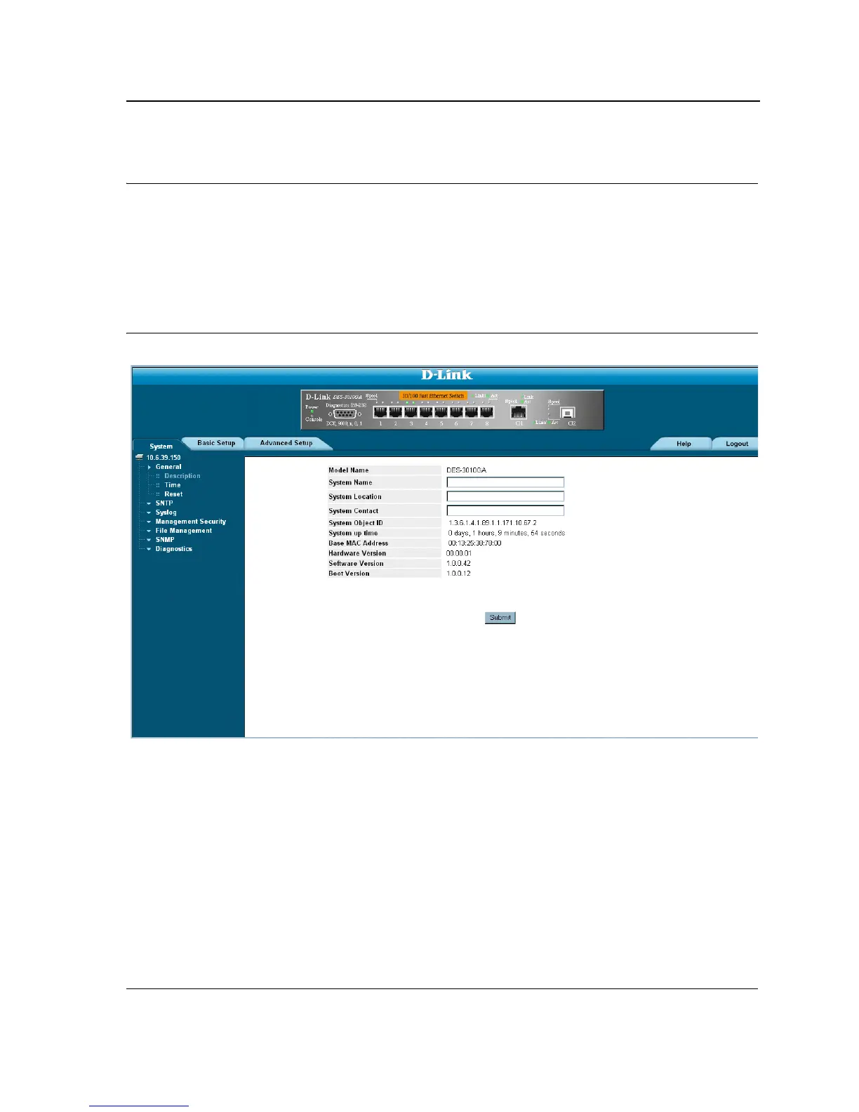 tem name, location, and contact, the system MAC Address, System Object ID, System Up Time, System IP and